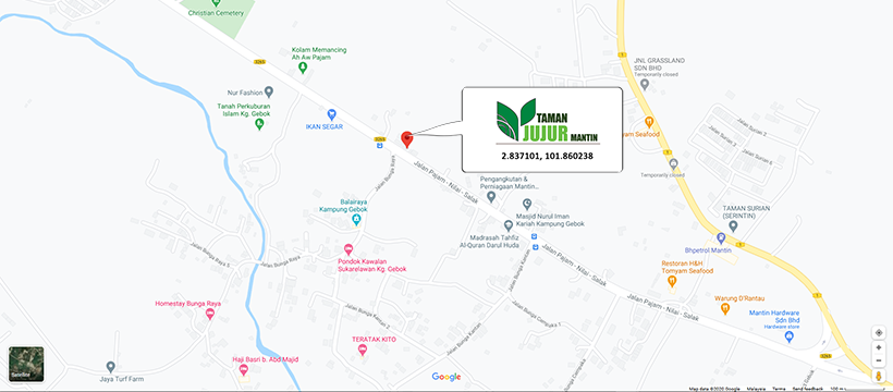Taman Jujur, Mantin. A 10 acres housing development project located along Jalan Mantin-Pajam mainroad consists of Shop houses, 2 storey terrace houses and landed townhouses. Expected to be launch in the year 2021.